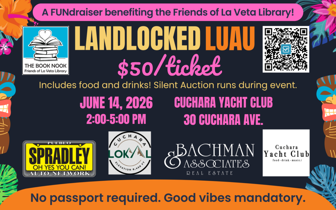 Get ready to experience a tropical paradise in the heart of Southern Colorado to benefit the Friends of La Veta Library! The Landlocked Luau is your escape to an island getaway without leaving the mountains! Join us at the Cuchara Yacht Club (30 Cuchara Ave.) for an unforgettable island vibe afternoon of tantalizing flavors, vibrant music, and a silent auction.