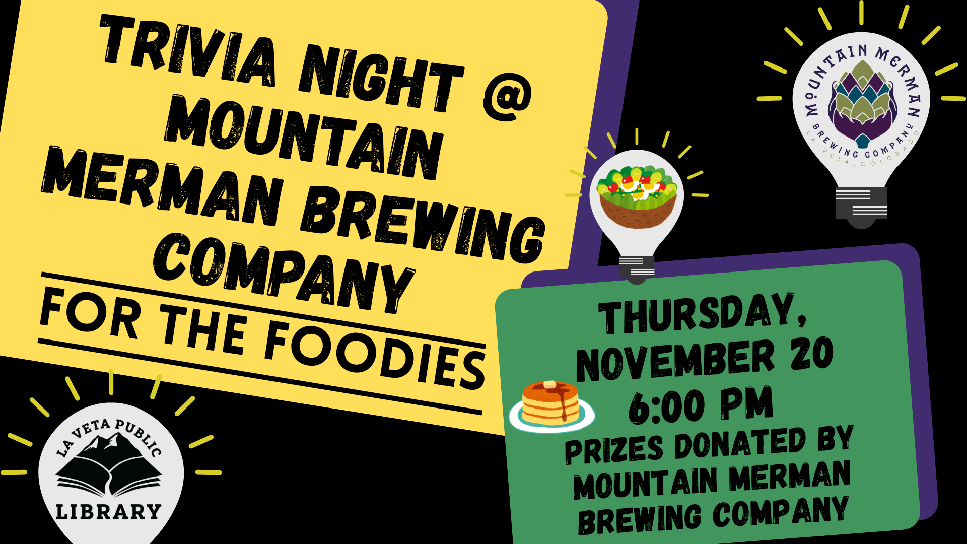 “Bon appétit, fellow foodies!” – Set the table for a delicious night of culinary knowledge! Join La Veta Public Library at Mountain Merman Brewing Company for a mouth-watering evening of “For the Foodies” Trivia! No electronic devices allowed—this will result in immediate team disqualification. There is no charge to participate in trivia. Great prizes donated by Mountain Merman Brewery! Want to host a library event at your business? We want to hear from you! info@lvpl.org