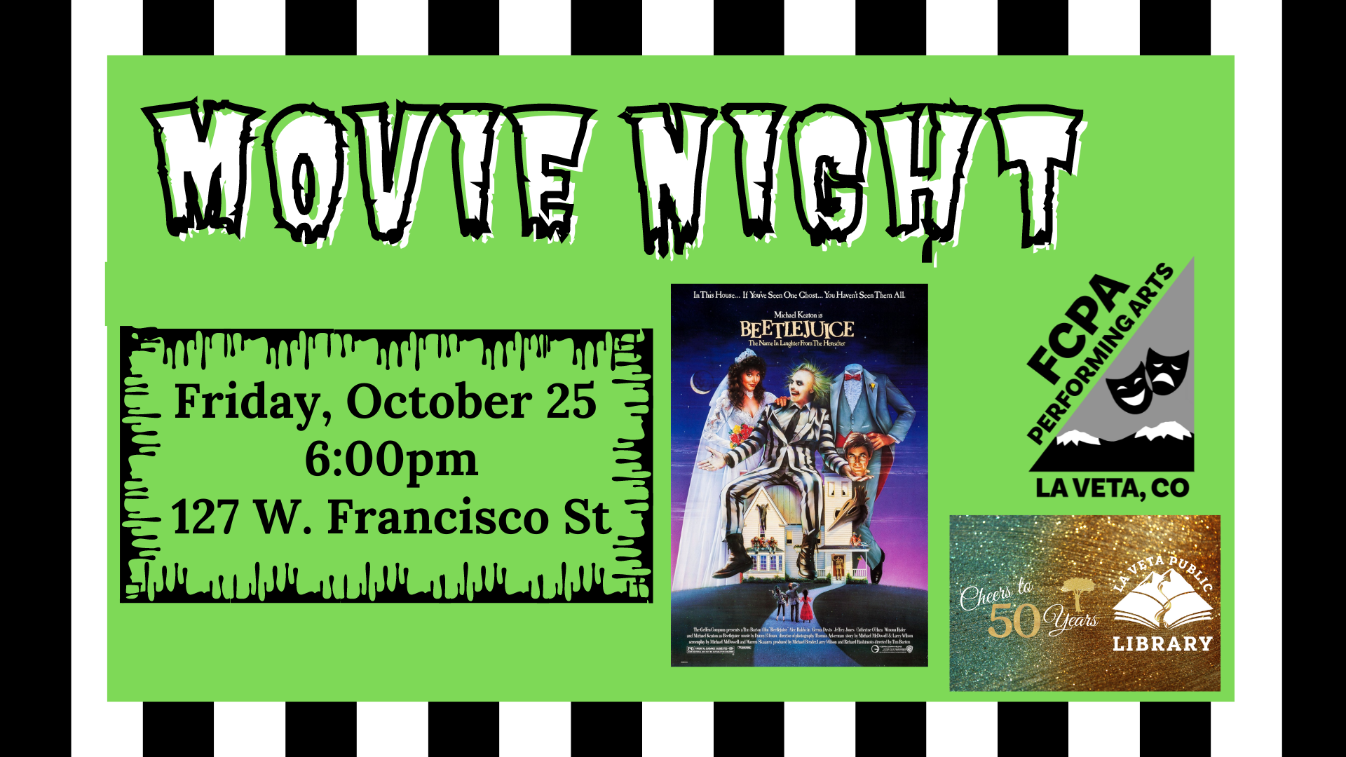 Join La Veta Public Library for a night at the theater in La Veta to see the cult classic Beetlejuice!